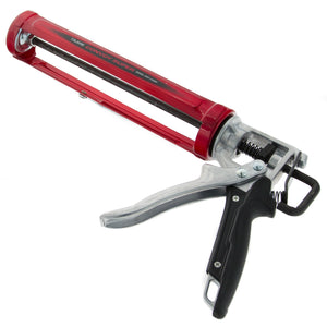 Is your caulking gun letting you down? The Caulking Gun by Tajima helps you apply sealants, decorators' caulk, and adhesives with ease. Featuring a twin thrust dispensing system and auto-flow stop giving you the advantage of a 12:1 ratio. This means you'll be assured of smooth application with medium viscosity adhesives! You'll receive a 9.45" (240mm) cartridge gun with an extra long seal puncture pin, that is comprised of a robust, meTallic red metal frame. Look no further for your caulking gun! Add to basket now, so you're ready for your next project.